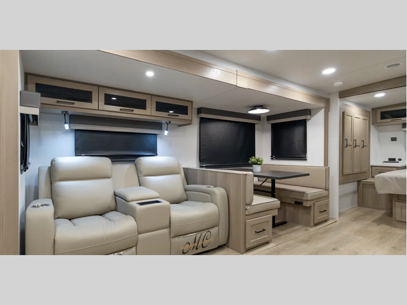 Each is built with 6-sided aluminum cage construction, a fully laminated walkable roof, and aluminum truss roof bracing for added support. You will love the standard features such as, a 200W solar panel, a Key-Alike lock system, and a Winegard Air 360+ prepped for Wi-Fi. The Coast to Coast Package includes amenities that will make you feel right at home including, solid surface kitchen countertops, roller shades, and soft close roller bearing drawers.