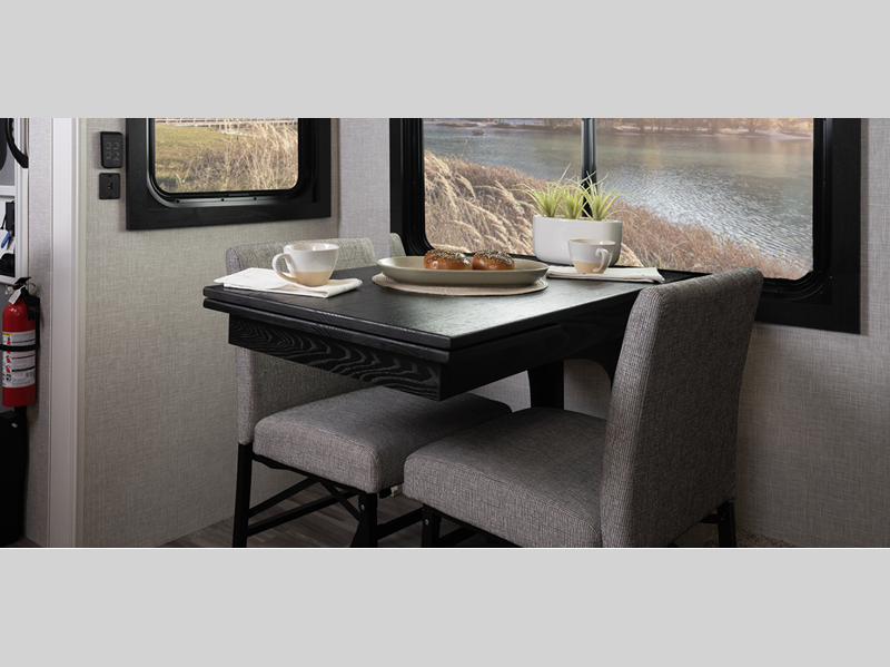 Sleeps 4 Slides 3 Length 40 ft 10 in Ext Width 8 ft 1 in Ext Height 13 ft 4 in Int Height 8 ft 7 in Interior Color Classic Farmhouse Hitch Weight 2375 lbs GVWR 14300 lbs Dry Weight 12020 lbs Cargo Capacity 2280 lbs Fresh Water Capacity 81 gals Grey Water Capacity 87 gals Black Water Capacity 87 gals Tire Size ST235/85R16E Furnace BTU 35000 btu Available Beds King Refrigerator Type 12 Volt Refrigerator Size 16 cu ft Cooktop Burners 3 Shower Size 30" x 60" Number of Awnings 2 LP Tank Capacity 30 lbs Water Heater Type Tankless AC BTU 30000 btu TV Info LR 50" 4K Ultra HD Smart TV Awning Info 21' and 10' 6" Electric with integrated dimmable LED lights Axle Count 2 Washer/Dryer Available Yes Number of LP Tanks 2 Shower Type Standard Electrical Service 50 amp Similar Floorplans