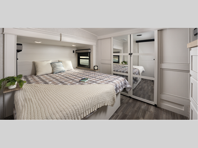 Sleeps 2 Slides 3 Length 34 ft 8 in Ext Width 8 ft 1 in Ext Height 13 ft 4 in Interior Color Classic Farmhouse Hitch Weight 2081 lbs GVWR 12900 lbs Dry Weight 10645 lbs Cargo Capacity 2255 lbs Tire Size ST235/85R16E Furnace BTU 35000 btu Available Beds King Refrigerator Type 12V Refrigerator Size 16 cu ft Cooktop Burners 3 Shower Size 30" x 48" Number of Awnings 2 LP Tank Capacity 30 lbs Water Heater Type Tankless AC BTU 30000 btu TV Info LR 50" 4K Ultra HD Smart TV Awning Info 9' and 19' Electric with integrated dimmable LED lights Axle Count 2 Washer/Dryer Available Yes Number of LP Tanks 2 Shower Type Standard Electrical Service 50 amp Similar Floorplans