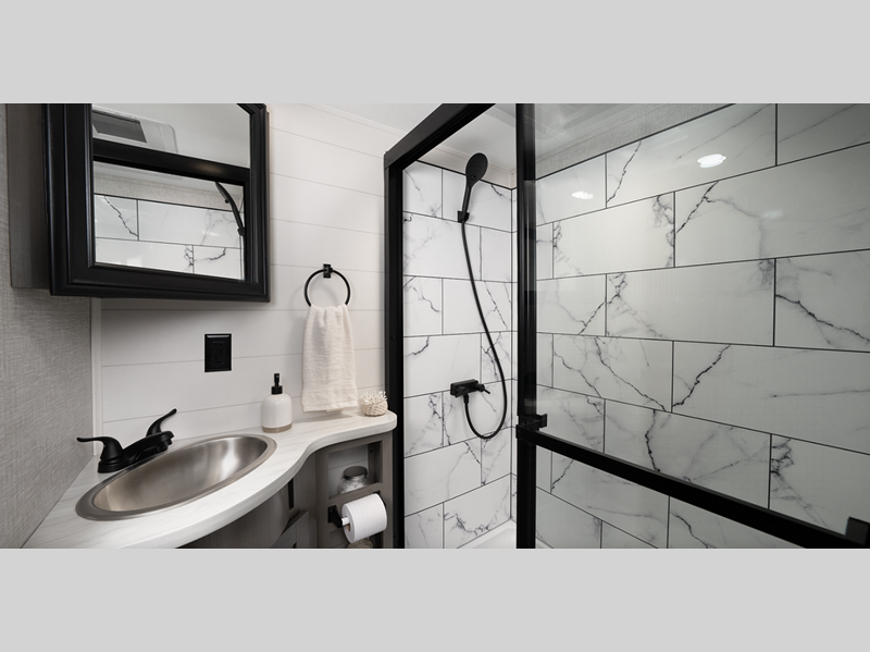 - Stronghold VBL™ aluminum framed and vacuum bond laminated gel coated fiberglass exterior walls and slide room end walls