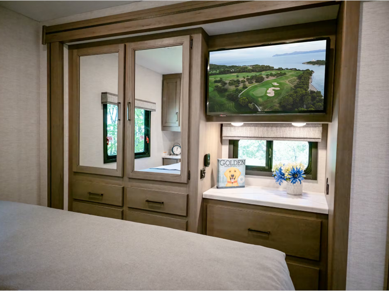 - Touch N’ Go Control™ Panel: Tank Levels, Generator AGS, Emergency Start Switch, & Slideout Controls